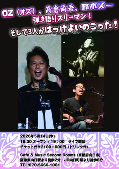 | OZ(オズ)、高倉尚吾、鈴木スー 弾き語りスリーマン! 「そして3人がはっけよいのこった!」 |