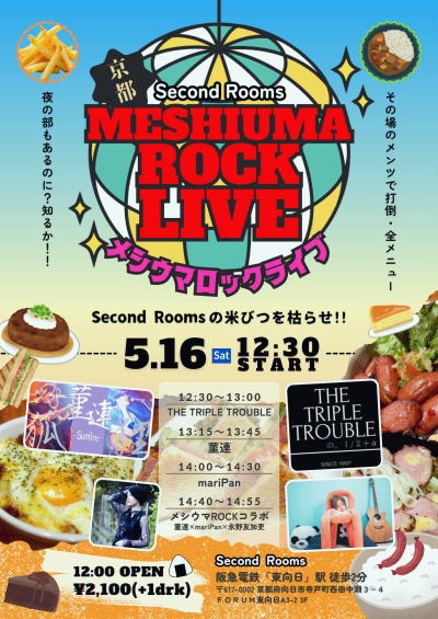 | 出演 | THE TRIPLE TROUBLE / 菫連 / mariPan / メシウマROCKコラボ(菫連×mariPan×永野友加吏) ![]() |